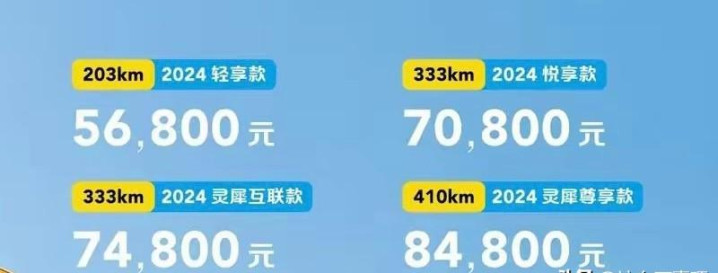 再往上看,就是333KM灵犀互联款和410KM灵犀尊享款。 灵犀互联款相比悦享款主要升级了车机系统,配备了10.25英寸双联屏和灵犀智能座舱,支持语音控制、导航等功能。 但是,4000元的差价,仅仅是为了升级车机系统,似乎有些得不偿失。况且现在手机导航功能已经非常完善,完全可以通过手机支架来实现导航功能。 至于顶配的灵犀尊享款,虽然续航里程提升到了410KM,并增加了前排侧气囊、自动大灯、雨量感应式雨刷等配置,但8.48万的售价已经接近甚至超过了一些A级车的价格。 在这个价位,消费者有更多的选择,比如比亚迪海豚、吉利几何E等等,这些车型在空间、配置、性能等方面都更有优势。
